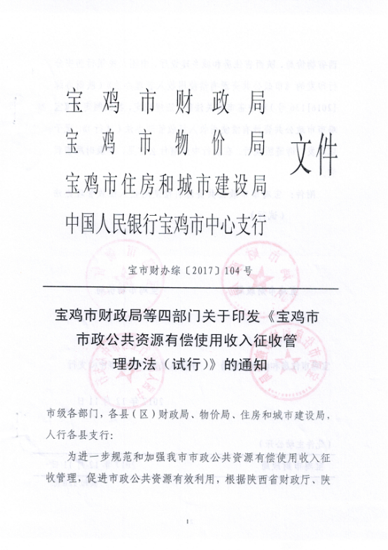 关于印发宝鸡市市政公共资源有偿使用收入征收管理办法的通知