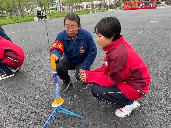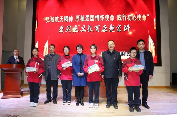 市财政国库支付中心党支部书记姚榛在活动上致欢迎辞。全国三八红旗手,西安航天复合材料研究所型号技术总师,科技委常委,硕士研究生导师,陕西省国防科技专家,航天四院中青年学术技术带头人李瑞珍为我市滨河中学师生和市财政局、市文化艺术中心、科技馆工作人员做了题为《航天梦与固体发动机复合材料技术》的专题报告,详细讲解了火箭构造以及发射原理等知识。市财政国库支付中心、西安航天复合材料研究所分别向滨河中学学生捐赠了火箭模型和学习用品。西安航天复合材料研究所专家与学生代表一起启动模拟点火器,共同完成了一次模拟火箭发射任务。