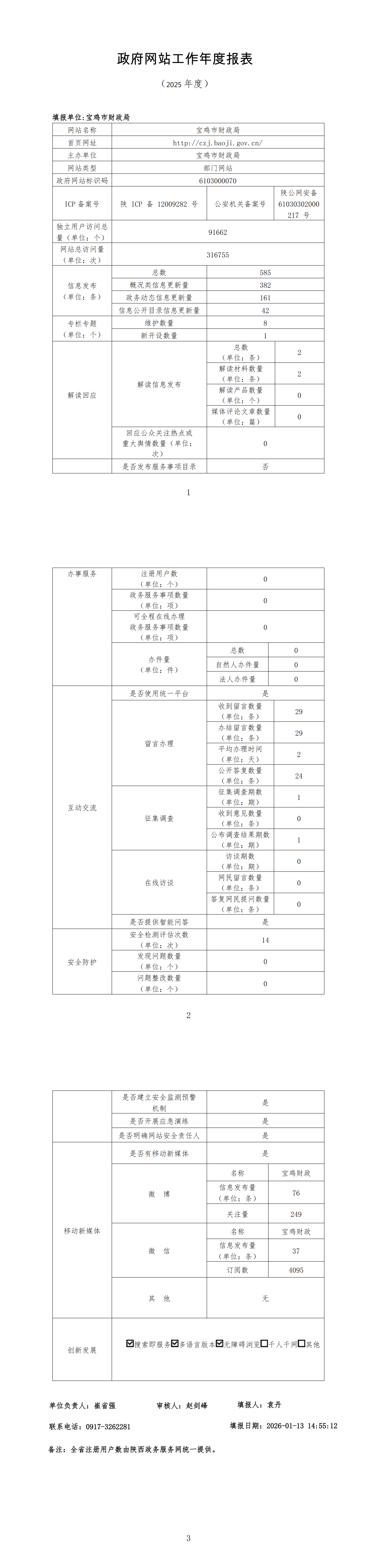 宝鸡市财政局2025年政府网站工作年度报表